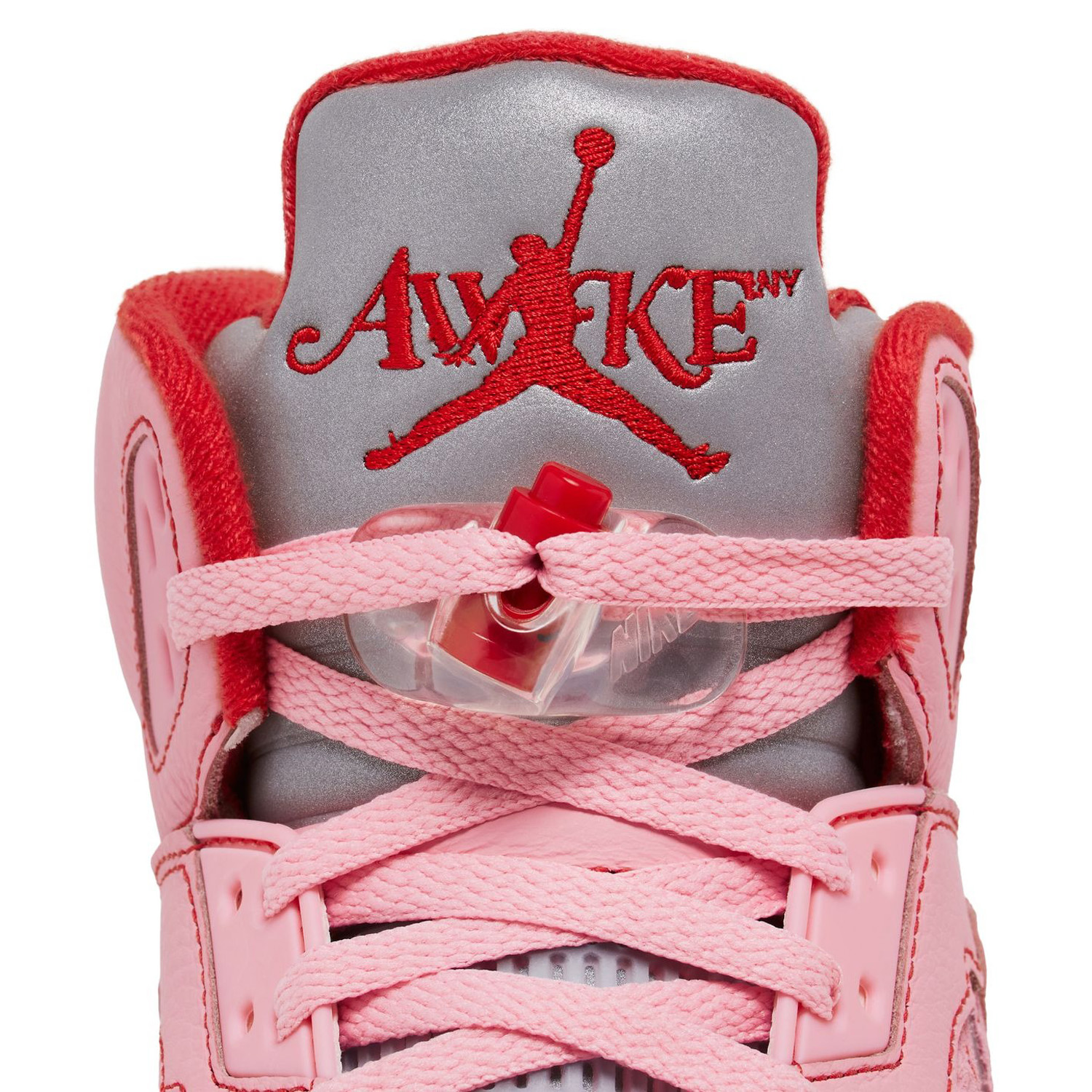 Buty wyróżniają się efektowną kolorystyką Arctic Pink, która przyciąga uwagę, oraz wysokiej jakości zamszową cholewką. Charakterystyczne elementy modelu AJ5, takie jak odblaskowy język, boczne siateczki i widoczna poduszka gazowa Air, zapewniają zarówno styl, jak i komfort noszenia. Dodatkowym atutem jest logo Awake NY na pięcie – detal, który podkreśla ekskluzywność tej kolaboracji.