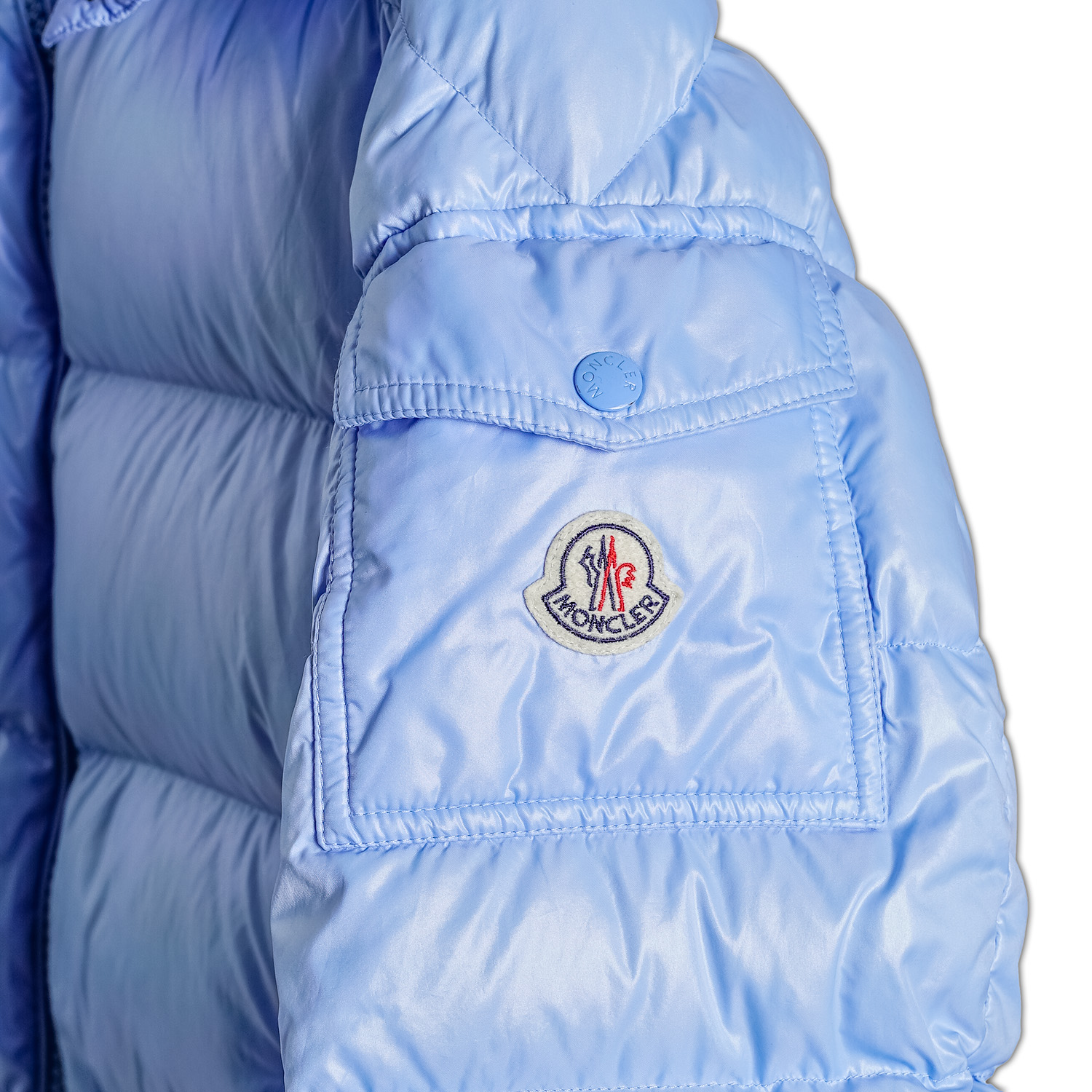 Kurtka łączy ikoniczną, połyskującą strukturę nylonu laqué z lekkim odcieniem baby blue, który nadaje jej wyjątkowy, niepowtarzalny charakter. To kolor, który przyciąga spojrzenia, podkreśla luksusowy wygląd i jednocześnie zachowuje klasyczną elegancję typową dla Monclera.