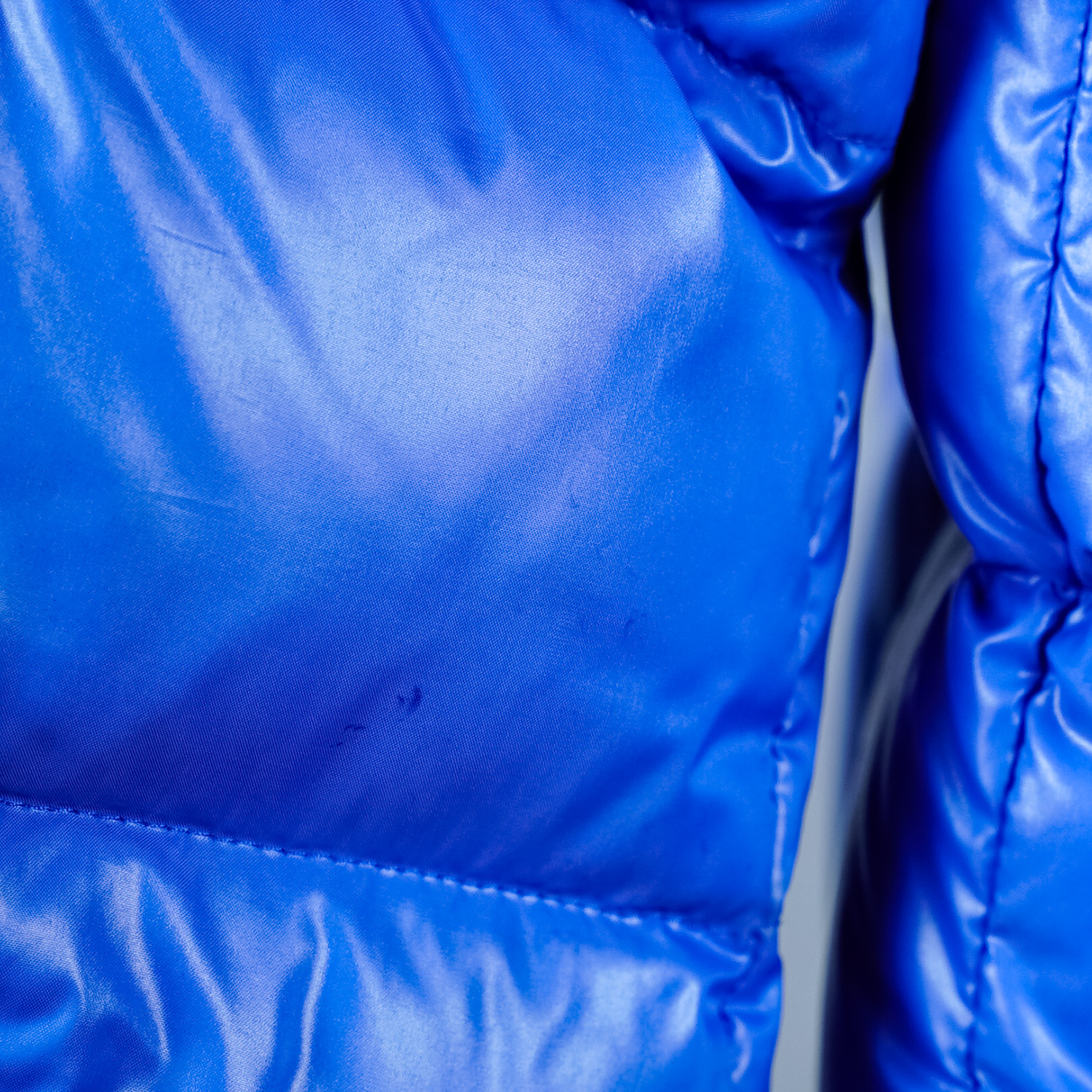 Kurtka jest w bardzo dobrym stanie, bez większych wad – noszona sporadycznie, zachowała połysk i strukturę materiału.