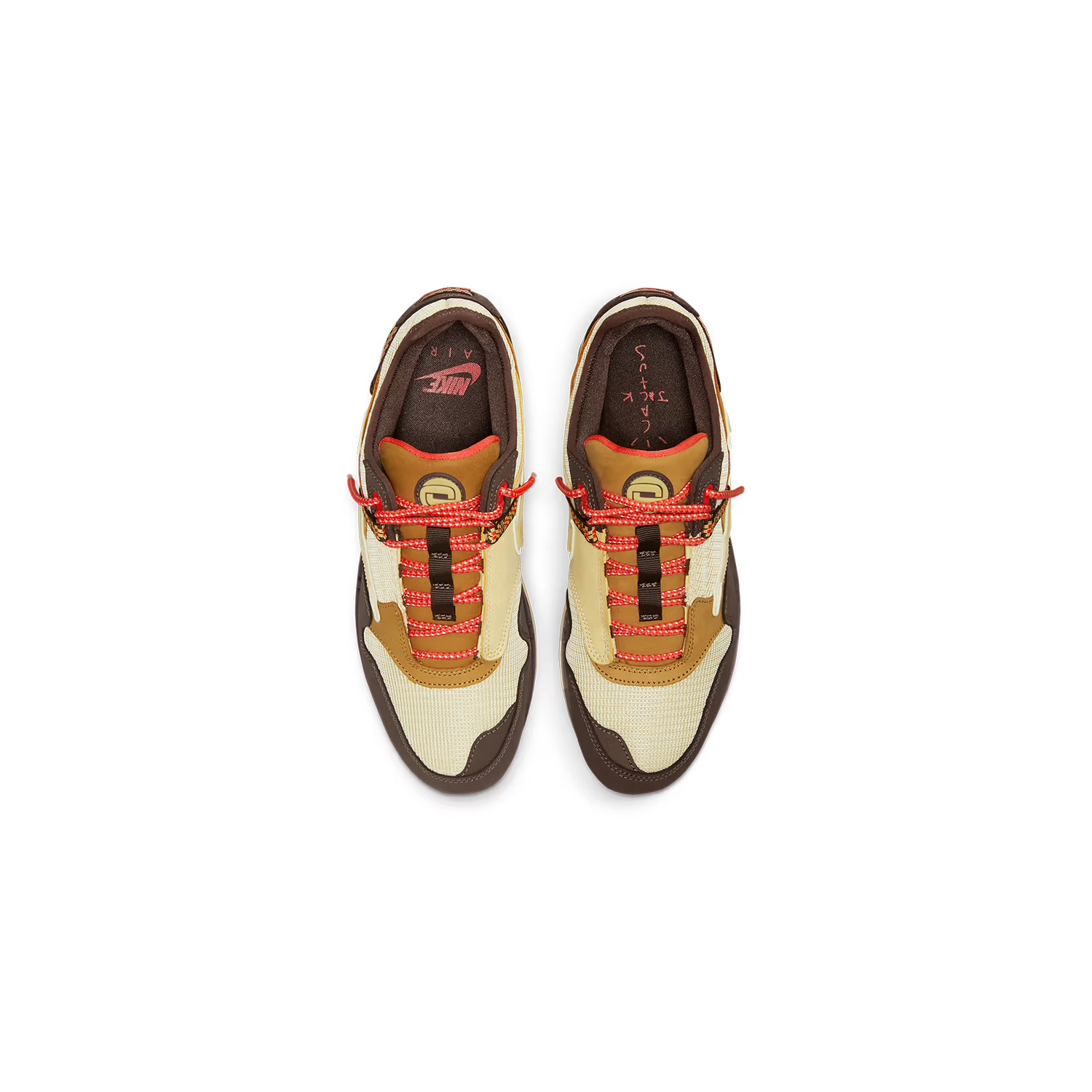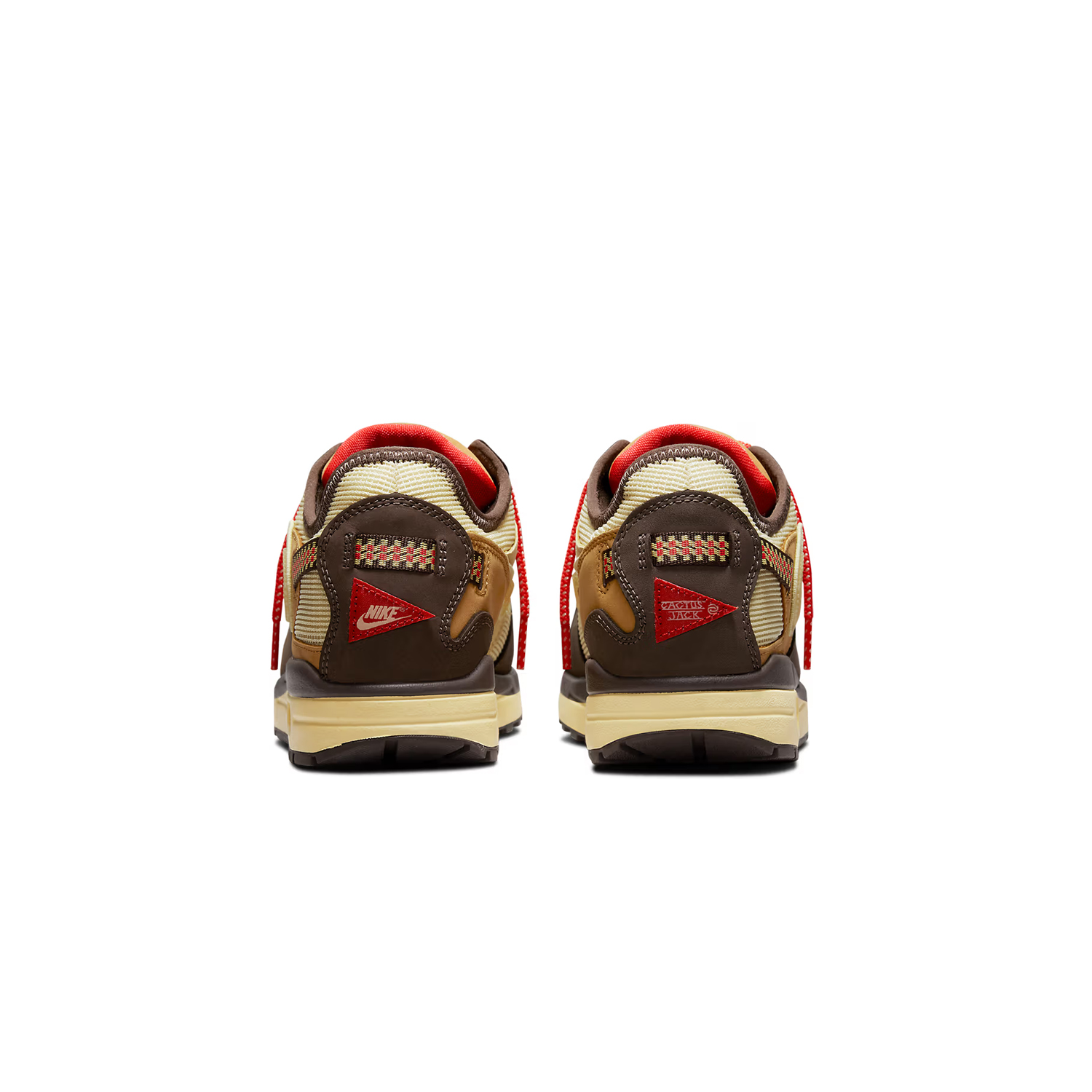 We współpracy z wytwórnią płytową Cactus Jack Travisa Scotta buty Nike Air Max 1 Travis Scott Cactus Jack Brown czerpią inspirację z butów turystycznych Nike ACG Pocket Knife. Ma warstwową cholewkę z siateczki z tonalnymi brązowymi nakładkami z Durabucku i odwróconymi logo Swoosh. System sznurowania Gillie ze sznurkiem nawiązuje do typowych cech biegaczy przełajowych. Całość dopełnia pożółkła podeszwa z mętna poduszka Air.